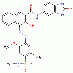 นามแฝง:2-Naphthalenecarboxamide, N- (2,3-dihydro-2-oxo-1H-benzimidazol-5-yl) -3-hydroxy-4 - ((2-methoxy-5-methyl-4 - ((methylamino) sulfonyl) phenyl) azo) -; 2-Naphthalenecarboxamide, N- (2,3-dihydro-2-oxo-1H-benzimidazol-5-yl) -3-hydroxy-4- (2- (2-methoxy-5-methyl-4 - ((methylamino) sulfonyl) phenyl) diazenyl) -; N- (2,3-Dihydro-2-OXO-1H-เบนซิมิดาโซล-5-YL) -3 ไฮดรอกซี-4 - ((2-methoxy-5-methyl-4 - ((methylamino) sulphonyl) phenyl) azo) เหม็น-2-carboxamide; 12516; สีแดงเข้ม; สีแดงสด HF4C; ดอกโบตั๋นสีแดง [HO]; ; (4Z) -4- {2- [2-methoxy-5-methyl-4- (methylsulfamoyl) phenyl] hydrazinylidene} -3-OXO-N- (2-OXO-2,3-dihydro-1H-เบนซิมิดาโซล-5 -yl) -3,4-dihydronaphthalene-2-carboxamide